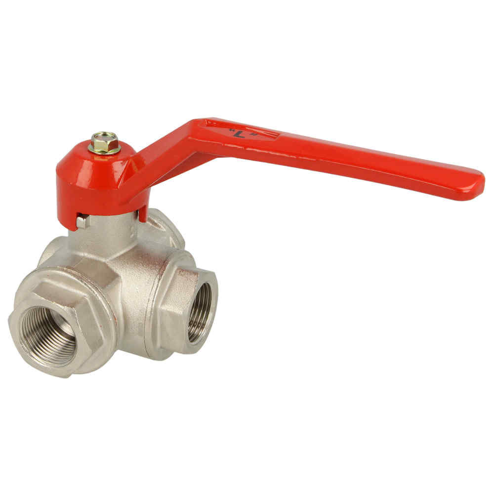 Vanne 1/4 de tour 3 voies femelle / femelle 1/2 en L